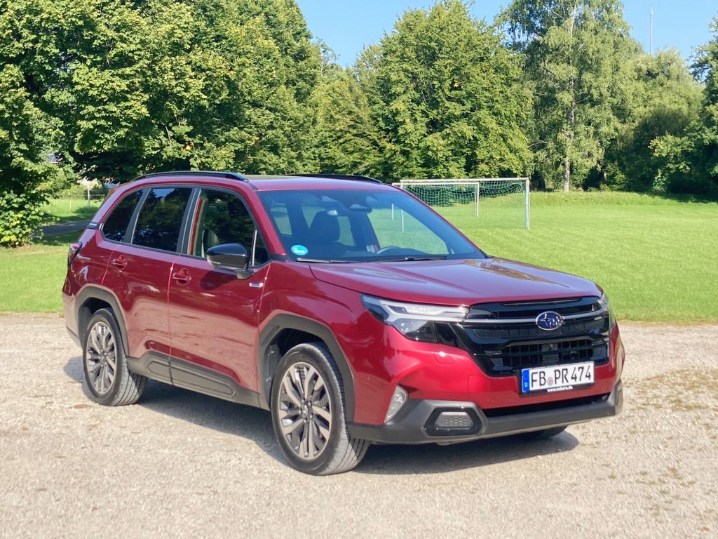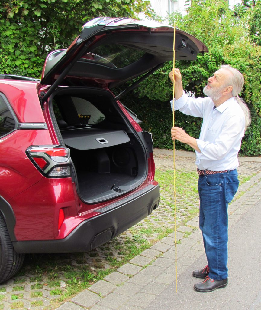 Was ist uns besonders aufgefallen? In diesem Japaner kann man mit einer Bodenfreiheit von 22 Zentimeter auch klaglos abseits befestigter Straßen unterwegs sein. Dazu schaltet man bei entsprechendem Untergrund zusätzlich  den Offroad-Assistenten X-Mode ein, der einen zuverlässig selbst durch leichtes Gelände mit Schlamm hinauf- und hinabkriechen lässt – und dies sogar rückwärts. Was wiederum die Ladeflexibilität im Innenraum betrifft, können wir auf den sicherlich ungewöhnlichen, aber durchaus machbaren Transport eines nicht ganz zierlichen Elektro-Klaviers hinweisen. Dabei nicht ganz unbedeutend: die rückenschonende Ladekante in 74 Zentimeter Höhe sowie die Ladelänge von 90 Zentimeter bis zu den hinteren Rücklehnen. Werden die getrennt nach vorn gekippt, was auch durch zwei Schalter ganz im Heck möglich ist, ergibt sich ein 1,85 Meter langer stufenloser Boden hinter den Vordersitzen. Übrigens konnten mit dem Klavier vier Erwachsene im Forester mitreisen, das nur eine hintere Sitzlehne gefaltet werden musste.