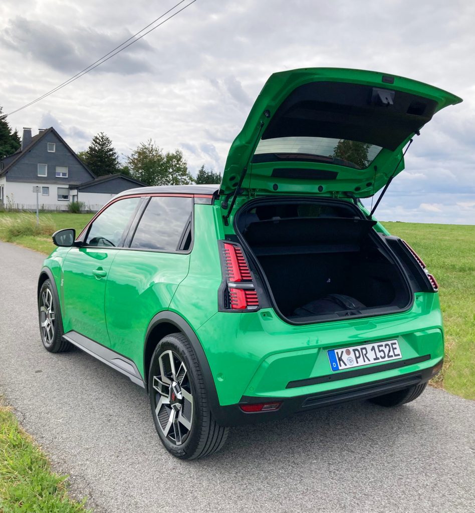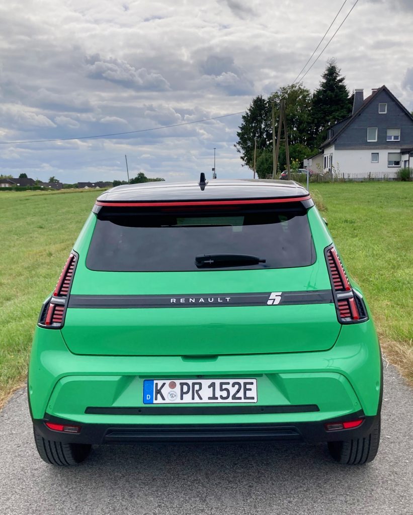 Erstling auf reiner Elektro-Plattform. Natürlich fällt er in der knalligen hellgrünen Lackierung sofort auf. Aber den Designern ist es auch gelungen, das Äußere des Kleinwagens in Anlehnung an das Karosseriekleid seines berühmten Vorgängers wieder aufzugreifen und – vielleicht noch wichtiger: es gekonnt neu zu interpretieren. Dazu gehört, dass er von allen Seiten ein bisschen watschelig dasteht, will sagen: In der Karosseriearchitektur wirkt er breit auf vier Räder gestellt, von dort geht es optisch schmaler werdend nach oben. Besonders gut kann man dies am Heck nachvollziehen. Selbst die Scheinwerfer vorne und hinten schwören vor dem geistigen Auge unwillkürlich den Ur-R5 herauf. Eine pfiffige Idee steckt in der Motorhaube, denn auf der Fahrerseite gibt es eine Art Digital-Display, auf dem – nicht ganz überraschend – eine große 5 abgebildet ist. Eingepasste Leuchtelemente informieren auf den ersten Blick in ebenfalls fünf Balken, wie es um den Ladezustand des Fahrzeugs bestellt ist. Wer Freude daran hat, sich von seinem kleinen Elektro-Freund leuchtend begrüßen zu lassen, wird mittels einer eben auf diesem Display stattfindenden inszenierten Lightshow angestrahlt. Nicht wirklich praktisch sind die hochkant in die Fenster hineingepfriemelten Türgriffe für die Fondportale. Das ist immer wieder ein umständliches Gefummel. Aber irgendwie scheint das dafür zuständige Team Gefallen daran gefunden zu haben – sie ziehen sich durch manche der hauseigenen Modelle. Was man übrigens nicht sieht: Der Wagen steht auf einer nagelneuen Plattform von Renault, die ausschließlich für Elektrofahrzeuge gedacht ist, wobei dem R5 die Ehre des Erstlings zuteil wird.
