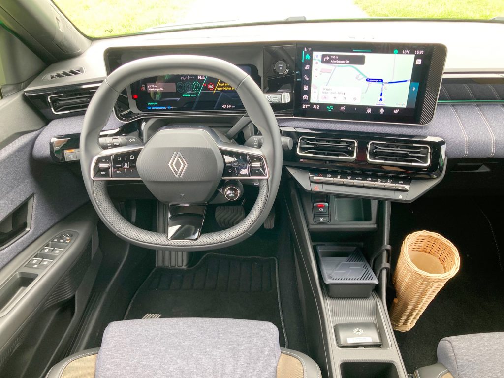Französische Lebensart mit Baguette-Korb. Ganz und gar keine Erstlings-Merkmale befinden sich im Innenraum. Denn so oder so ähnlich geht es heutzutage in den meisten Cockpits zu und ist im R5 E-Tec ein Zeichen dafür, dass tendenziell auf bewährte Anordnungen gesetzt wird. Da kann man nicht meckern, denn die Aufteilung der beiden Bildschirme im Querformat vor dem Lenkrad und in der Mitte entlang der Armaturentafel gehört zu den gut einsichtigen Elementen des alltäglichen digitalen Arbeits- und Informationsbereiches. Ebenfalls gut zu bedienende Schalter und Tasten für manchen Kurzbefehl sitzen griffgünstig auf Lenkrad und Mittelkonsole. Der Wählhebel zum Einlegen der Fahrtrichtungen ist direkt vom Steuer aus zu betätigen. Hübsches Detail: Mit der darauf abgebildeten Jahreszahl 1972 wird man an die Geburt des Vorfahren erinnert. Durch einen kurzen „Renault“-Ruf ist die Sprachbedienung zu aktivieren, die unter anderem solche Nettigkeiten wie Fenster öffnen oder schließen zu tun in der Lage ist – keineswegs üblich in der Kleinwagenklasse. Mit einer zweimaligen kurzen Befehlseingabe auf „My Safety“ verabschiedet sich der sowieso schon recht dezent klingelnde Warnton zur Überschreitung der Geschwindigkeitsvorgaben. Ungewöhnlich laut hingegen klopft der Fahrtrichtungsblinker, gegen dessen Lautstärke man leider machtlos ist. Ziemlich witzig, da einmalig, ist der auf Wunsch erhältliche längliche Baguette-Korb links vom Beifahrersitz, wo eingefleischte Frankreich-Liebhaber zumindest ihrem Hang zum Savoir vivre bildhaft frönen können. Der Sitzkomfort ist angemessen, hinten geht es bauartbedingt eng zu, da muss man sich nichts vormachen. Der Kofferraum indes fasst ordentliche 326 Liter, die sich auf gut einen Kubikmeter vergrößern lassen. Solcherart mittels Umklappen der zweigeteilten Rückbank auf maximale Transportkapazität getrimmt, gibt es jedoch eine mächtige Stufe im Ladeboden.