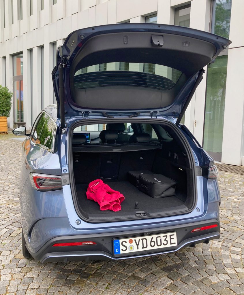 Apropos Platz: Auf allen fünf Sitzen geht’s geräumig zu. Ganz so lobenswert geht es allerdings nicht weiter. Denn die 500 Liter unter der Gepäckraumabdeckung sind für einen Kombi dieser Größe wahrlich nicht rekordverdächtig; maximal stehen dachhoch nicht mehr als rund 1,5 Kubikmeter zur Verfügung. Aber klar, der Batteriepack fordert Platz! Bei umgelegten hinteren Rücklehnen entsteht eine leicht ansteigende Ladefläche, wobei ein Meter zwischen den Radkästen die Breite fürs Verstauen des Transportguts definiert. Die Ladekante in 68 Zentimeter Höhe ist absolut rückenfreundlich.
