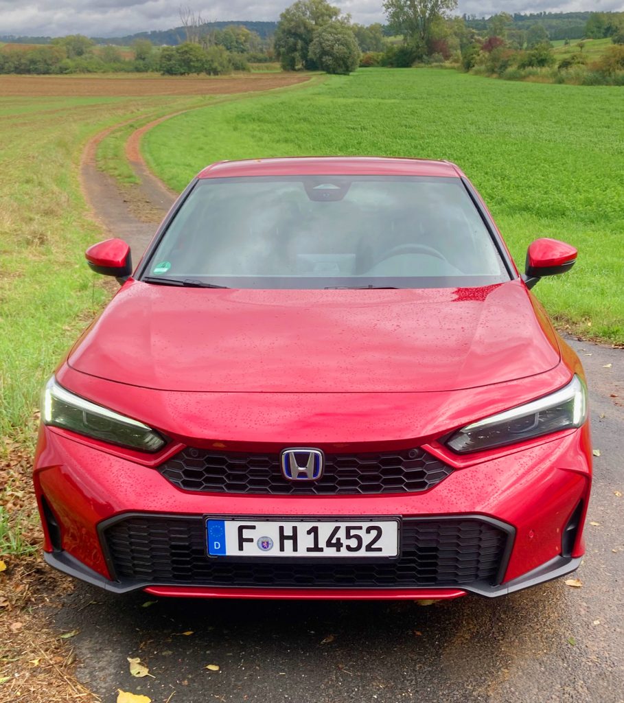 Maß halten bei der Modellpflege. Nach Erkenntnissen der hiesigen Honda-Zentrale lohnt es sich, noch für einige Zeit ihre Vollhybridmodelle im Blick zu haben. Sie tragen die Zusatzbezeichnung e:HEV. Deshalb wurde nach der Modellpflege ihres Kompakt-SUV namens HR-V nun auch die Limousine mit ihrem schon lange bekannten Namen Civic einer Erneuerung unterzogen. Äußerlich gibt es leichte Retuschen an der Karosserie, aber auch im Innenraum sind Veränderungen zu verzeichnen; aufgefrischte Ausstattungen gehören sowieso zum guten Ton einer Modellpflege. Der Civic zeigt nun einen schwarz umrandeten Kühlergrill, die Leuchtgruppen sind neu sortiert, in Wagenfarbe lackierte Spoiler setzen feine Akzente; zudem gibt’s eine weitere Außenfarbe in Blau.