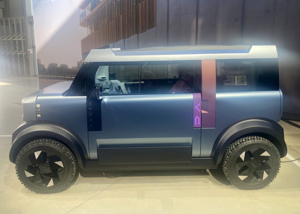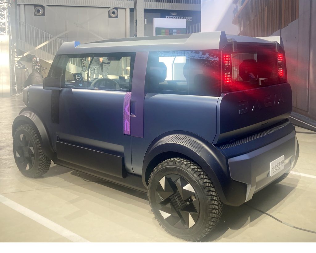 Ein Elektrozwerg für die Stadt. Bleibt eben genau die Frage nach dem Antrieb, wobei sich der Hersteller noch ziemlich bedeckt hält. Natürlich kam der Zwerg leise surrend angefahren, aber arg viel mehr zur stromernden Realität gibt es nicht. Dacia spricht konkret von einem Stadt-Begleiter mit einem Radius von 120 Kilometer pro Stromladung. Wer sich die Modellplatte des rumänischen Herstellers unterm Renault-Dach anschaut, entdeckt derzeit dort den größenmäßigen Einstieg durch den 3,70 Meter kurzen Elektro-Spring ab knapp 17.000 Euro. Davon würde dann sicherlich noch eine gute Schippe beim Hipster abgehen. Allerdings sind Preisdiskussionen bei einem Konzeptfahrzeug sowieso erst mal nur Schall und Rauch.