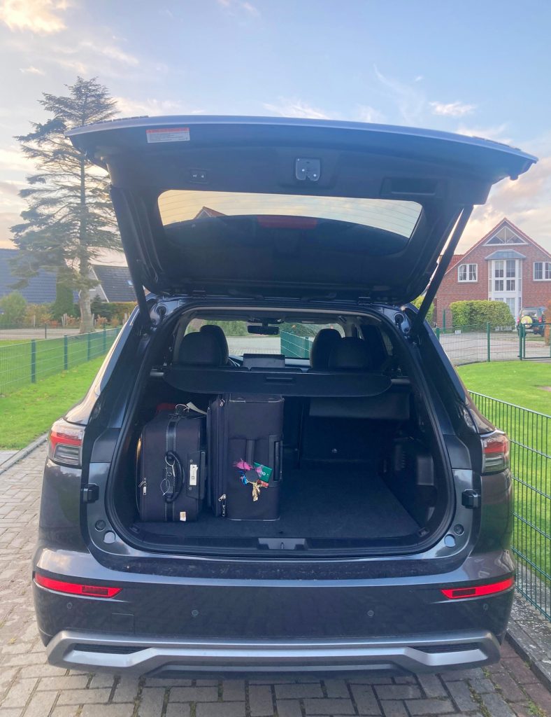 Ein bisschen kompliziert: den mitgelieferten – hierzulande im öffentlichen Ladenetz völlig unüblichen – CHAdeMO-Stecker mit Adapter einzusetzen. Dann wäre der Akku am Schnelllader in rund 30 Minuten voll. Aber auch hier gilt generell: Wer entlang der Autobahn viel Strecke machen möchte, wird mit einem PHEV-Wagen wohl häufiger im reinen Benzinbetrieb unterwegs sein. Denn für stromernde 70 Kilometer im skizzierten Bestfall 30 Minuten Fahrtunterbrechung hinzunehmen – das macht man wohl eher nicht so häufig. Aber dafür ist ja sowieso der tüchtige Verbrenner an Bord. Unser Testverbrauch mit leerer Batterie und nicht über Tempo 130 – und mit vollbepacktem Fahrzeug: 8,7 Liter.