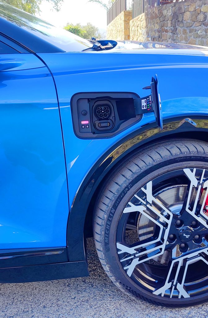 Verbrauch. Sicherlich steht der Verbrauch nicht unbedingt im Vordergrund bei einem Wagen, dessen Eigenschaften an die Ikone A110 erinnern sollen. Man kann sich die A390 aber genauso gut als schnellen Crossover für Familien vorstellen – hier spielt der Verbrauch dann eben doch eine Rolle. Bei flotter Fahrweise mit 21 Zoll großer Bereifung reicht der Batterievorrat bei 20 Grad Außentemperatur für etwa 350 Kilometer. Fährt man auf 20 Zoll gemütlich durch Stadt und Land und belässt es bei 120 Stundenkilometern auf der Autobahn, beträgt die Reichweite etwa 450 km. Das sagte uns zumindest der Bordcomputer voraus.