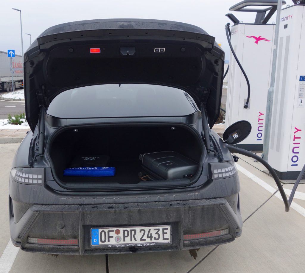 Aufladen. Jetzt haben wir es eilig, aber die knapp 500 Kilometer von der Abfahrt in Krakau bis zur Mittagspause im österreichischen Pandorf unweit des Neusiedlersees sind bei winterlichen Temperaturen, denen wir uns mit voll aufgedrehter Sitzheizung entziehen, nicht in einem Zug zu schaffen, die nach WLTP angebenen 680 Kilometer Reichweite sind reines Wunschdenken – jedenfalls um diese Jahreszeit: Wir müssen noch in der Slowakei eine Ladestation von Ionity anfahren. Dieses Unternehmen bietet in 24 Ländern Europas entlang der Autobahnen ein Hochleistungs-Ladenetz an und ist vor allem im Osten des Kontinents gut vertreten. Bis zur Mittagspause sind es von hier nur noch 160 Kilometer, und um diese Reichweite aufzuladen, dauert es an der Schnellladestation nur einige Minuten. Denn mit seinem 800-Volt-Bordnetz erreicht der Ioniq 6 in der Spitze eine Ladeleistung von 260 kW, wie wir verfolgen können. So soll es in 18 Minuten von 10 % auf 80 % Akkuladung gehen.