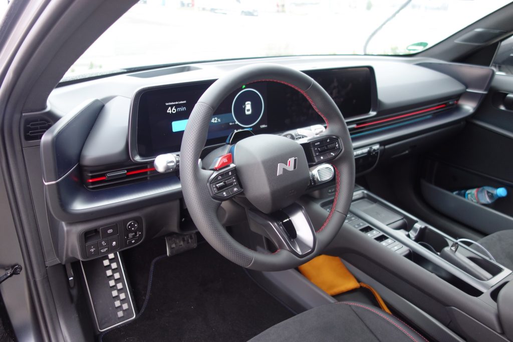 Innen. Wir lassen uns lieber von den weit öffnenden Türen in einen großzügigen und klar gestalteten Innenraum bitten, nehmen auf bequemen Vordersitzen Platz, die sich, das sei vorweggenommen, als ausgesprochen angenehm über die langen Stunden an diesem Tag erweisen. Auf den ersten Blick gelungen ist die Weiterentwicklung im Innenraum vor allem durch eine große Zahl von Drucktasten, so dass nun viele Funktionen – etwa im Bereich der Belüftung bis hin zur Sitzheizung –  per Knopfdruck bedient werden können: ein wichtiger Beitrag zur Entlastung von Fahrerin oder Fahrer, wie wir am Abend nach 850 Kilometer Fahrt festhalten können.