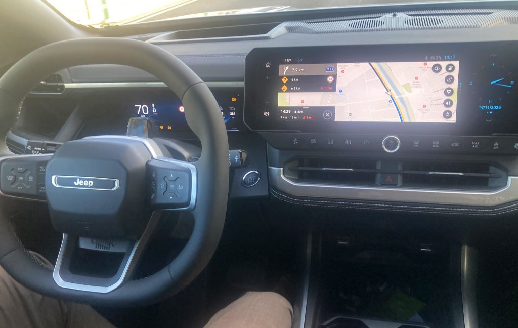 Mit komplettem Stromer auf Tour. Als zweite Motorisierung wird ein batterieelektrischer Compass ab 47.900 Euro mit einer Leistung von 213 PS/157 kW angeboten – kein Schnäppchen im Wettbewerberumfeld. Sein Drehmoment von 345 Newtonmeter liegt bekanntermaßen ab der ersten Umdrehung an, womit sofort ein entsprechend zupackendes Fahrverhalten erreicht werden kann. Für einen atemberaubenden Wow-Effekt reichte es während der Testtour jedoch nicht – musste es auch nicht, da Kavalierstarts aus verschiedenen Gründen sowieso aus der Mode gekommen sind. Sehr praktisch sind die Stufen der Energierückgewinnung per Schaltwippen am Lenkrad zu bedienen. Am stärksten rekuperiert ein zusätzlicher One-Pedal-Schalter, der den Wagen auch bis zum Stillstand bringt. Das Fahrwerk zeigte sich übrigens im direkten Vergleich mit dem e-Hybrid-Compass deutlich unruhiger. Mit einer Reichweite von rund 500 Kilometern unter Idealbedingungen liegt dieser Jeep im Mittelfeld innerhalb der aktuellen stromernden Gemeinde.