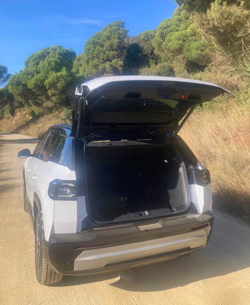 Lenkrad zum Zupacken, viele Ablageflächen. Im Inneren setzt sich die Kastenwelt auf praktische Weise fort. Eine hoch gebaute Armaturentafel mit wohnlich weichgeschäumten Oberflächen beherbergt flach gezogene Instrumente vor dem Lenkrad, das oben und unten abgeflacht und vor allem robust zum Zupacken gestaltet ist. Rechts daneben thront der übliche berührungsempfindliche Bildschirm in 16-Zoll-Breitkantformat. Der Beifahrer hat vor sich ein geschlossenes großes Handschuhfach sowie eine offene Ablagefläche darüber für allerlei Krimskrams. Auf der Mittelkonsole fällt neben einem Drehrad fürs Getriebe – vornehmlich ist die Inneneinrichtung in dunklen Farbtönen gehalten – ein knallroter Kippschalter für die Fahrprogramme auf: Sport, Auto, Sand, Schnee. Interessanterweise sitzt er näher am Fahrer als das Drehrad, das in der Regel sicher häufiger benutzt wird. Der Motorstartknopf ist ein bisschen unpraktisch hinterm Wischerhebel angebracht.