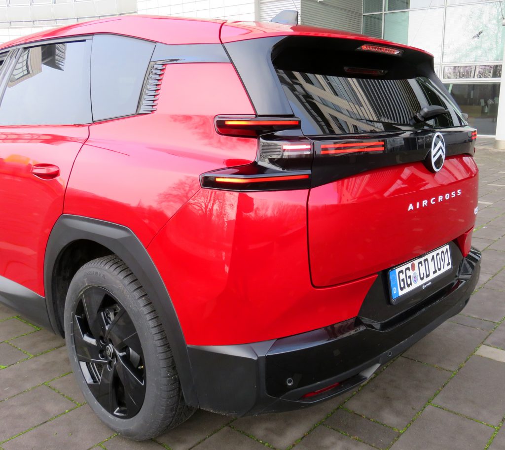 Der C5 Aircross ist ein waschechtes SUV und gilt nun in seiner zweiten Generation als Citroen-Flaggschiff im Pkw-Angebotsfächer, nachdem der C5 X eingestellt wurde. Es gibt diesen 4,65 Meter langen Franzosen in drei Antriebsvarianten – als Hybriden, Plug-in-Hybriden sowie komplett batterieelektrisch. Wir sind mit dem Hybriden unterwegs gewesen, der von einem Dreizylinder-Benziner samt kleinem Elektromotor bewegt wird.