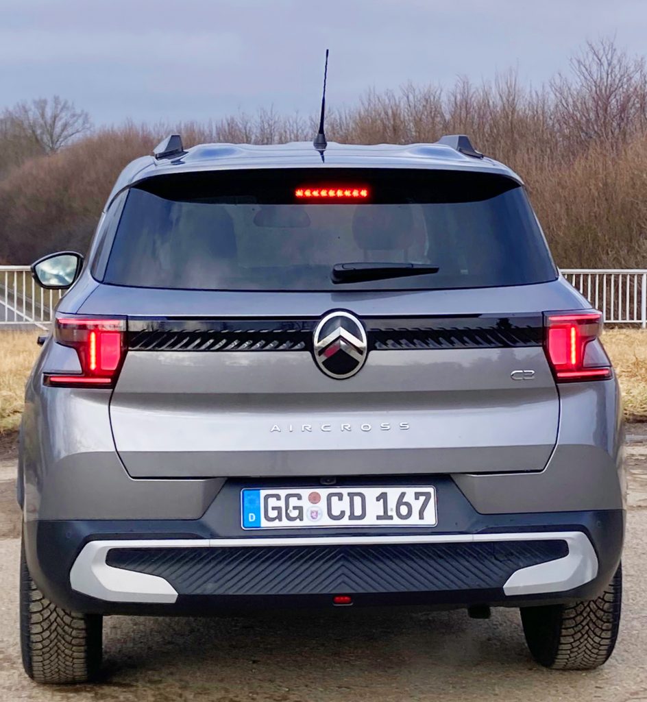 Welchen Antrieb hat das Auto? Die Motorenpalette ist überschaubar: Den 1,2-Liter-Benziner gibt es in zwei Leistungsstufen – mit 101 PS/74 kW oder 136 PS/100 kW. Letzteren hatten wir an Bord, der durch seinen mildhybriden Antrieb noch weitere 21 Elektro-Pferdestärken im Köcher hat, sodass man mit einer Systemleistung von 145 PS/107 kW unterwegs ist. Damit ist der C3 Aircross gut bestückt, auch wenn man vollbesetzt oder vollbepackt auf Tour geht. Man muss wahrlich keine Ohrstöpsel tragen, um das dezente Brummeln der drei Zylinder auszublenden. Das ist kein Problemthema! Interessanterweise – und hier sei wieder ein Vermerk in Richtung Opel Frontera erlaubt –, hat man beim C3 Aircross die Wahl zwischen Basisbenziner mit Sechsgangschaltung oder grundsätzlich Doppelkupplungsgetriebe beim stärkeren Motor. Der Frontera hat in beiden Fällen eine Doppelkupplung eingebaut. Wenn man dem C3 Aircross die Sporen gibt, dann ruckelt es je nach Drehzahl ab und an mal, was wir aber als untragische Kleinigkeit abtun wollen.