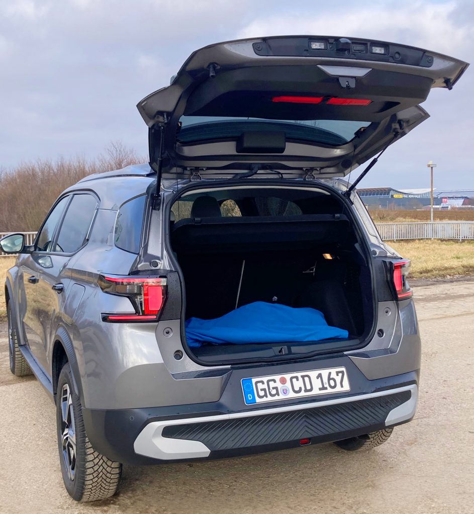 Es ist immer wieder bemerkenswert, welche unterschiedlichen Platzverhältnisse in der zweiten Reihe und im Kofferraum in der Kompaktklasse herrschen. Im Aircross-Fond sitzen Erwachsene ausgesprochen bequem, was die Beinfreiheit betrifft; auch nach oben ist genug Luft – bauartbedingt knapp wird es bei drei Mitfahrern nebeneinander. Aber auf kürzeren Touren dürfte man sich arrangieren können. Der Gepäckraum ist wirklich ordentlich: 460 Liter unter der Abdeckung, da geht einiges rein! Sofern man zwei weitere faltbare Plätze bestellt und aufgestellt hat, schmilzt die Ladekapazität naturgemäß gegen Null. Was uns gefehlt hat? Schade, dass man die Rückbank nicht verschieben kann, aber das ist wohl dem Rotstift zum Opfer gefallen.