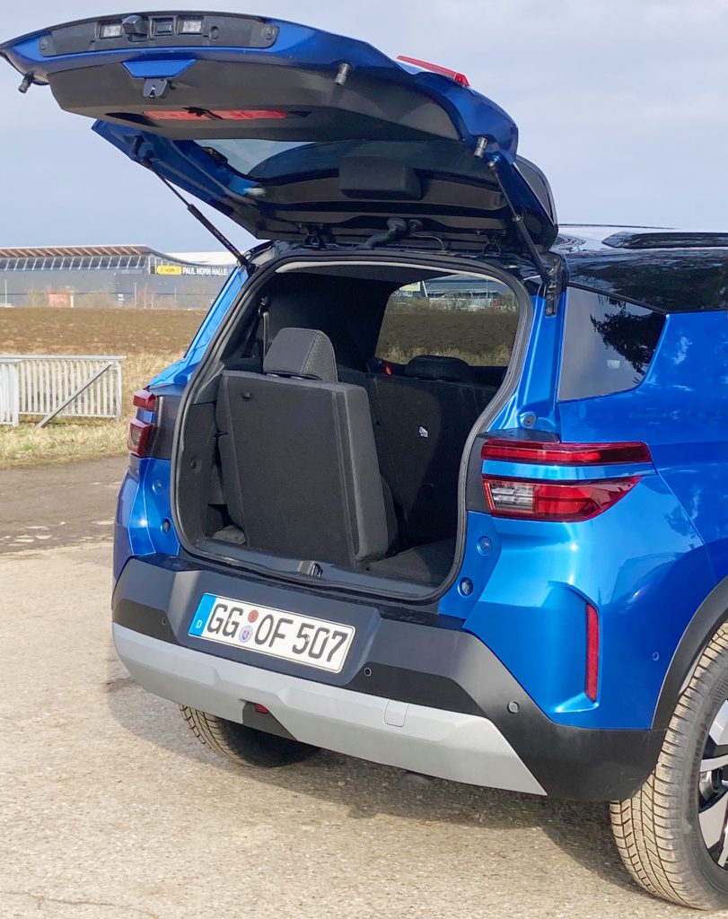Was ist das für ein Auto? Zugegeben, es ist nicht ganz leicht, innerhalb der derzeit beliebtesten Fahrzeugklasse alle anderen Kompakt-SUV auszublenden und auf die Außenhaut des Frontera zu schauen, ohne einen anderen mit ihm zu vergleichen – schon gar nicht, wenn man an seinen Konzernzwilling Citroen C3 Aircross denkt. Doch es ist möglich, und dann kann man sagen: Es ist gelungen, eine Karosserie zu entwerfen, die mit ausdrucksvollen Kanten und sparsam eingesetzten Wölbungen ein ansehnliches Bild abgibt – ohne aufgeregte Zickzacklinien. Was uns nur verwundert: In der mittleren GS-Ausführung unseres Testwagens verschwimmt die dunkel gehaltene Blende zwischen den Scheinwerfern komplett mit dem ebenfalls schwarzen Opelblitz. Was also bei anderen Autos gelingt, sie mittels flüchtigem Blick aufs Markenzeichen einem Hersteller zuzuordnen, geht hier nicht. Was leider auch nicht gelingt: Die Türen mit Hilfe der Bügelgriffe ohne etwas Kraftaufwand zu öffnen. Irgendwie hakelt es da, jedenfalls sind sie schwergängig. Ansonsten handelt es sich beim Frontera um ein ganz normales mittelgroßes SUV – mit einer absoluten Besonderheit: der Wahl zwischen fünf und sieben Sitzen!