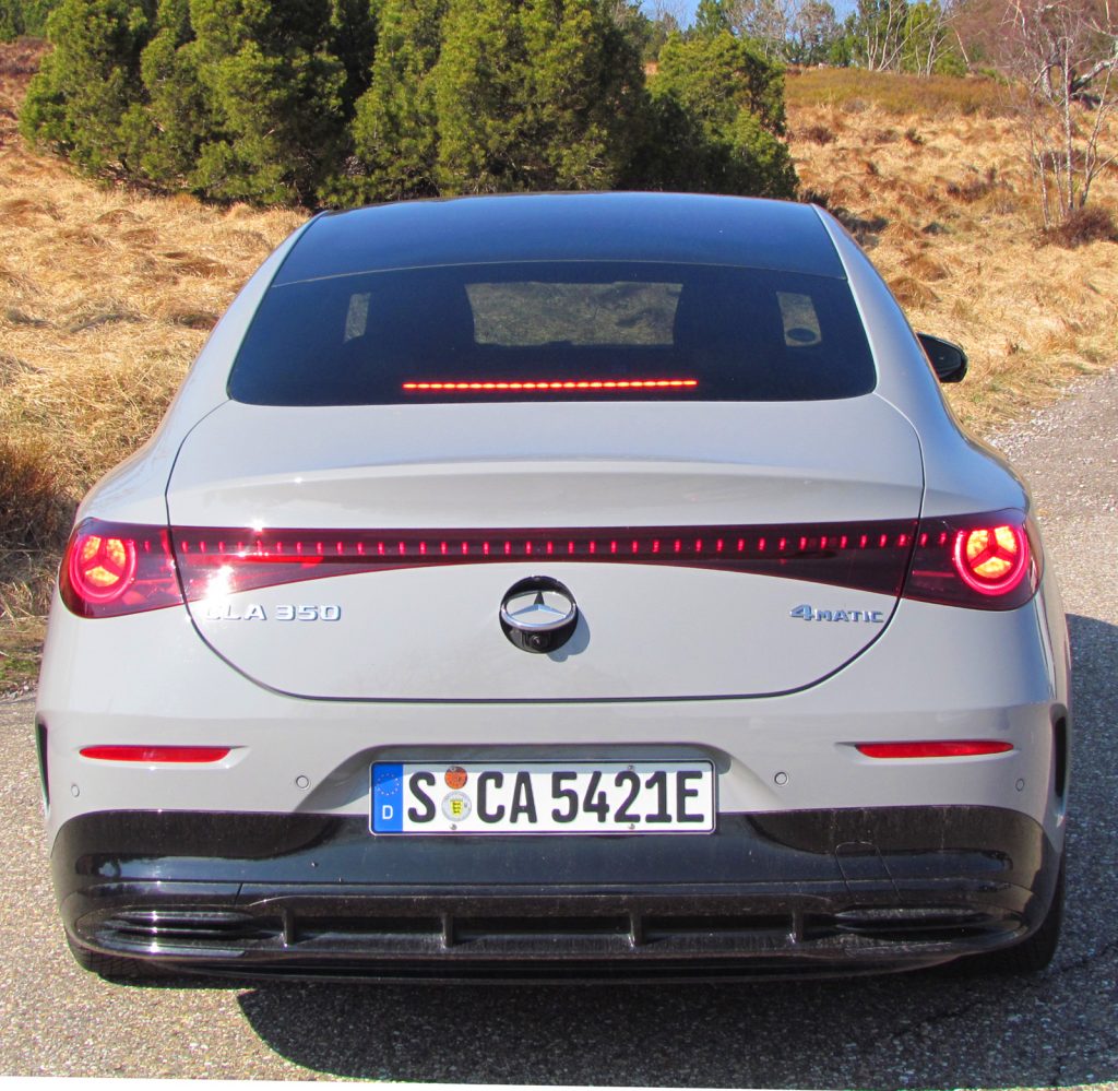 Bei jenen kämen wir nicht auf die Idee, die Zeit an der Zapfsäule auch nur zu erwähnen – anders beim E-Auto: Um die Ladeaufenthalte so kurz wie möglich zu halten, wird im CLA-Antriebsstrang mit 800 Volt gearbeitet. Am Schnelllader gibt der Hersteller von 10 auf 80 Prozent 22 Minuten an. Wir haben an einer 400-kW-Säule von 50 auf 80 Prozent 13 Minuten gebraucht – mit einer maximalen Ladeleistung von 94 kW. Das sollte uns 414 Kilometer weit bringen. Ein andermal wurde uns bei 100 Prozent Vollladung und einer Außentemperatur von 11 Grad Celsius eine Reichweite von 456 Kilometern vorhergesagt. Als die Luft sich am nächsten Morgen durch Sonneneinstrahlung auf 18 Grad erwärmt hatte, sollte der Strom für zwanzig Kilometer mehr reichen – beide Werte sind ernüchternd angesichts einer WLTP-Angabe von 770 Kilometer. Am Testende lag unser Durchschnittsverbrauch bei 18,7 kWh auf 100 Kilometer – das sind fast fünfzig Prozent über dem WLTP-Wert, und das bei bürgerlicher Fahrweise ohne jede Raserei. In jedem Falle müssen E-Auto-Fahrer außer Energievorrat an Bord und Fahrstil auch das Außenthermometer im Auge haben – man fährt bewusster unter Strom.