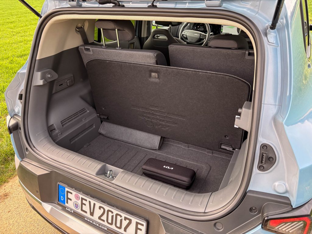 Pfiffiges Konzept mit vier oder fünf Sitzen. Bei Kia hat sich eine dreigeteilte Bildschirmanordnung eingebürgert. So ganz zufrieden sind wir mit dem mittleren Teil mit berührungsempfindlicher Klimadarstellung nicht, da die Infos durch den Lenkradkranz nicht gut einsehbar sind. Aber erfreulicherweise findet sich in der Mitte der Armaturentafel am unteren Teil eine Schalterleiste zur alternativen Bedienung der Klimafunktionen. Zeitgemäß gibt es die übliche Anbindungsmöglichkeit für mobile Endgeräte und natürlich eine Ladeschale zum kabellosen Laden eines Handys. Obendrein sind USB-C-Anschlüsse vorne und hinten vorhanden.